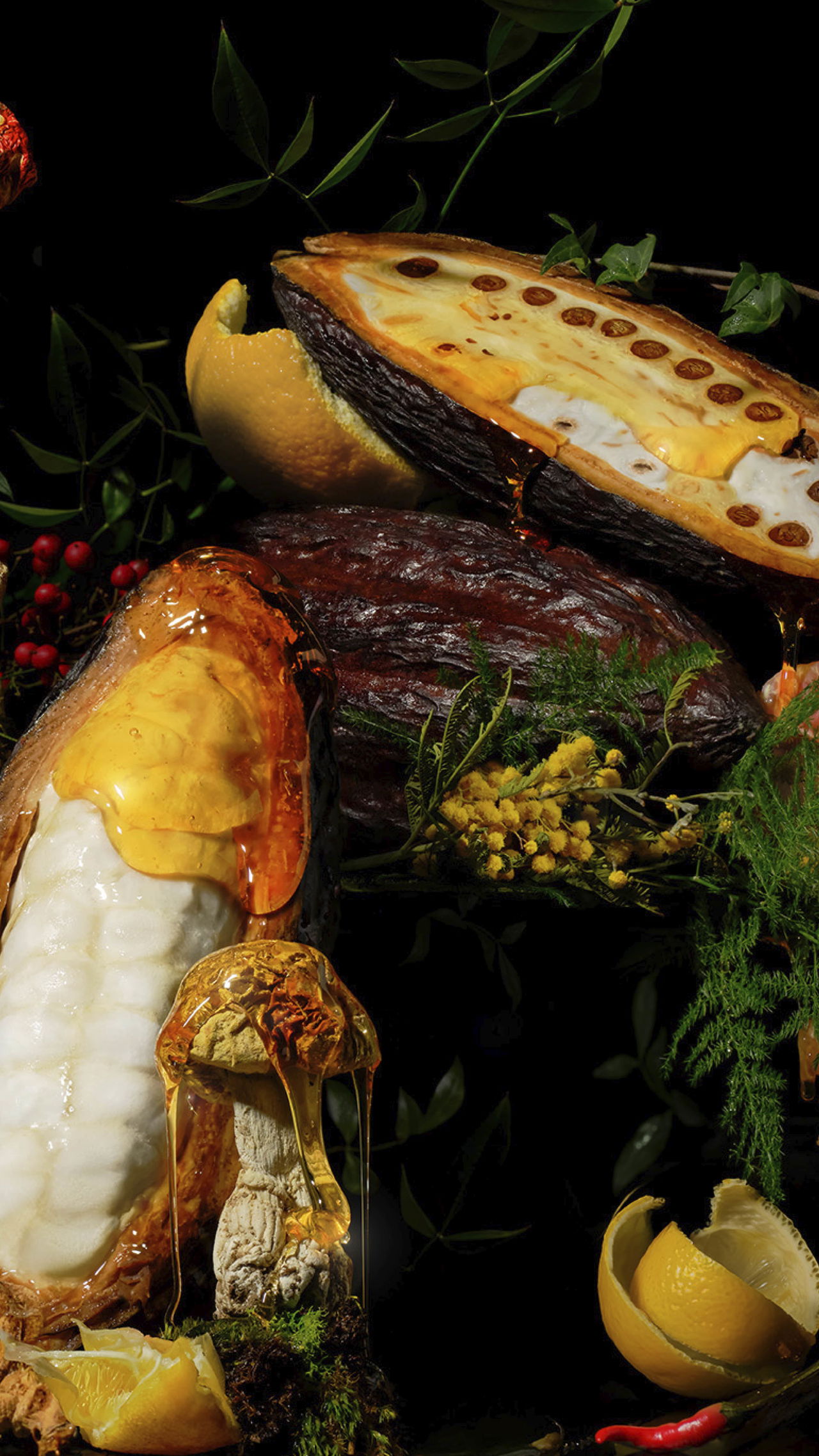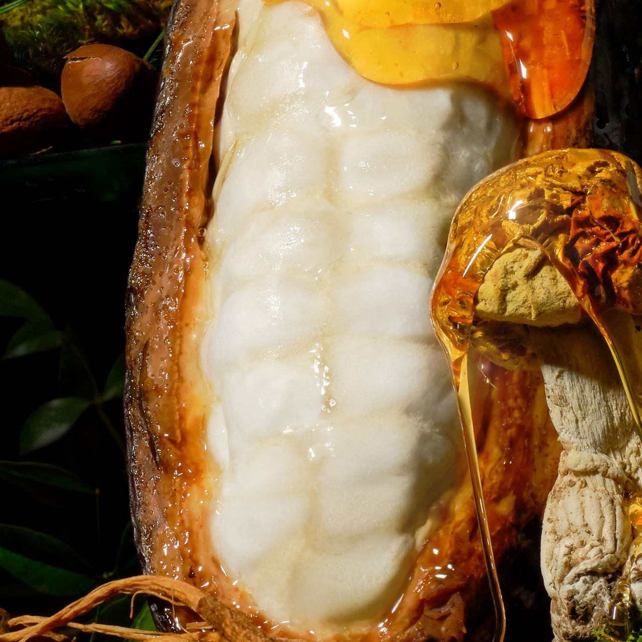 Blended with honey, cacao, vanilla, chili pepper, kola nut extracts, lemon & yuzu juice.
